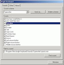 Jingle Keyboard é um programa desktop única novidade que pode fazer sua datilografia parecer uma máquina de escrever real (para aqueles de nós que se lembram máquinas de escrever REAL). O programa é uma instalação simples, que executa na bandeja de tarefas, e com um único clique esquerdo alterna ligado ou desligado. Um botão direito do mouse no ícone da bandeja aparece um menu. Escolhendo a interface opções mostra uma caixa de diálogo tabulada em que as preferências podem ser personalizados. Para além da digitação e retornos de carro Jingle Keyboard também permite que os usuários atribuir sons ao Esc e teclas de função, e até mesmo para cliques de mouse. Usuários podem escolher entre diferentes sistemas de som, inclusive escaramuça (pouco estrondos e estrondos como fogo de artilharia) e do canto do pássaro. E agora, o programa é grátis!